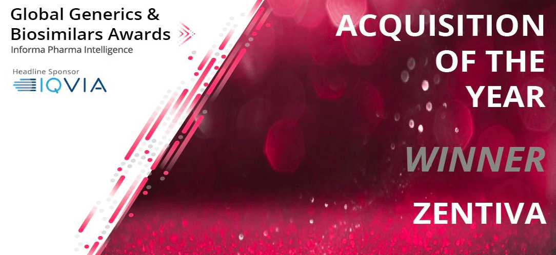 Zentiva a primit premiul 2020 Global Generics & Biosimilars Bulletin Award la categoria Achiziția anului în zona EMEA. În al doilea trimestru al anului 2020, în timpul vârfului primului val al crizei COVID-19, Zentiva a finalizat achiziția Alvogen CEE care a reunit două dintre cele mai importante companii de generice și OTC-uri din regiunea CEE. Această achiziție susține călătoria Zentiva și ambiția companiei de a crește, în timp ce extinde amprenta comercială a companiei.