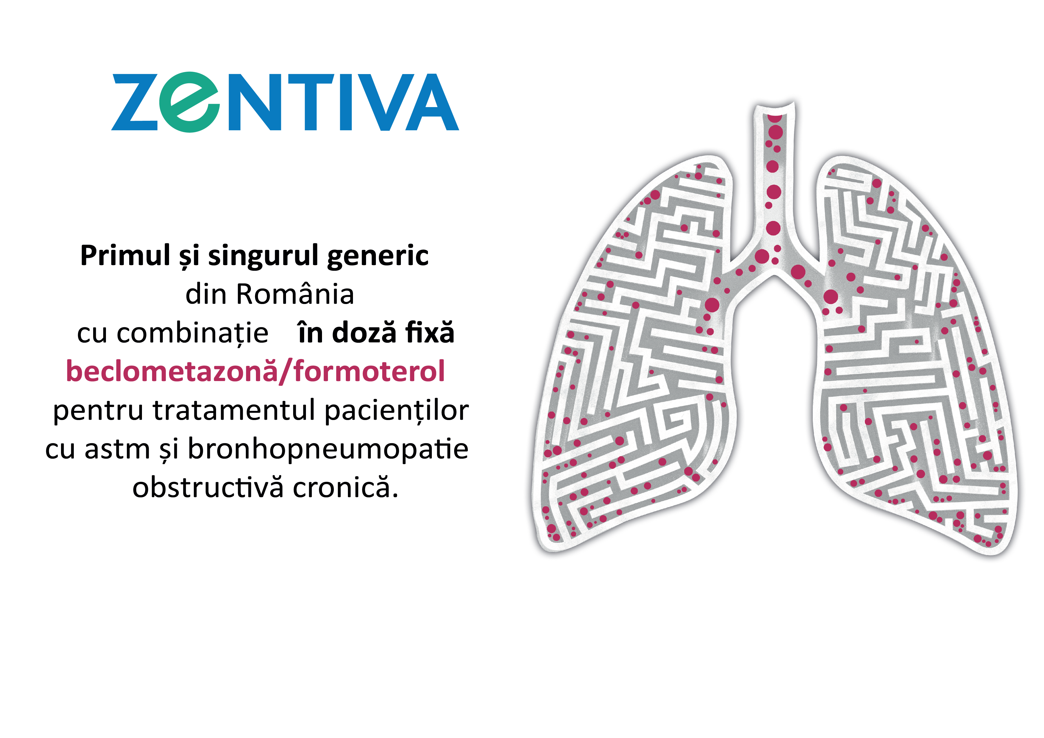 Grupul de companii Zentiva din România, lider în volum și valoare pe piața medicamentelor generice din România*, lansează primul și singurul generic din România al combinației fixe formoterol (beta2-agonist cu acțiune prelungită) și beclometazonă (corticosteroid inhalator), o combinație recomandată de ghidurile GINA (Inițiativa Globală pentru Astm) și GOLD (Inițiativa Globală pentru Bronhopneumopatie Obstructivă Cronică). Acest medicament vine în sprijinul pacienților cu afecțiuni respiratorii (cum ar fi astmul și bronhopneumopatia obstructivă cronică - BPOC) ca opțiune terapeutică accesibilă și eficientă.